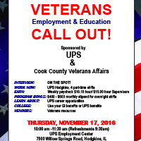 Please mark your calendars and be represented at our upcoming Veterans Employment & Education Call Out! This event is hosted by UPS, Hodgkins, IL and the Cook County Veterans Affairs office. There are immediate job openings at UPS as well as real career potential! Read more [...]