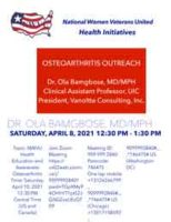 Health Education Awareness Osteoarthritis with Dr. Ola Bamgbose, MD/MPH. SATURDAY, APRIL 8, 2021 12:30 PM - 1:30 PM via Zoom.