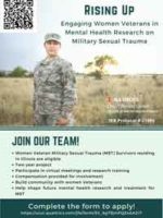 Participate in a voluntary research project. The purpose is to understand MST survivors’ experiences, perspectives, and priorities about mental health treatment and research. Applications Open: March 15-April 19, 2021