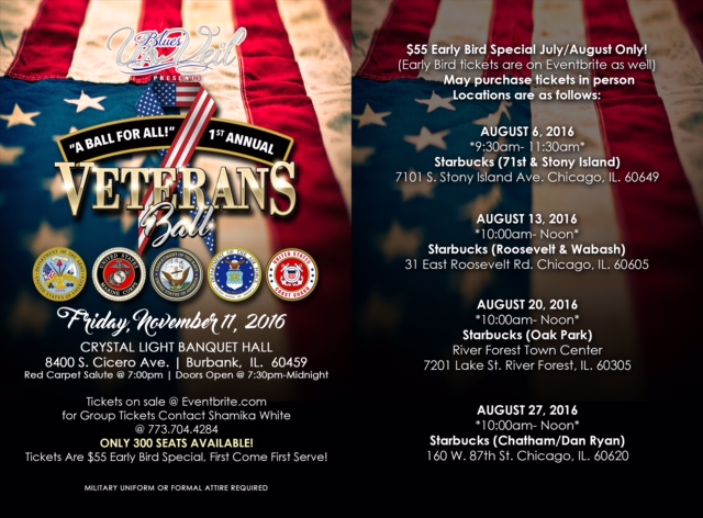 Blues’ UnVeil presents 1st Annual Veteran’s Ball, “A Ball for All”. What does that mean? This means that all branches: ARMY, MARINE, NAVY, AIRFORCE and COAST GUARD will be under one roof having a ball! You don’t want to miss it!