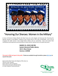 In honor of Women’s History Month, the West Towns (IL) Links Chapter will showcase the “Honoring Our Sheroes: Women in the Military” initiative of the Central Area of The Links, Incorporated. Join us as we recognize the noble women in the United States military and our community. Learn more about their contributions and experiences and local efforts to assist women veterans from a live panel discussion.