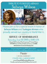 On behalf of the Wilson family and Chapel Hill Gardens West Cemetery and Funeral Home, an honored Dignity provider, the Chicago (DODO) Chapter of the Tuskegee Airmen, Inc. is cordially invited to a special event in honor of