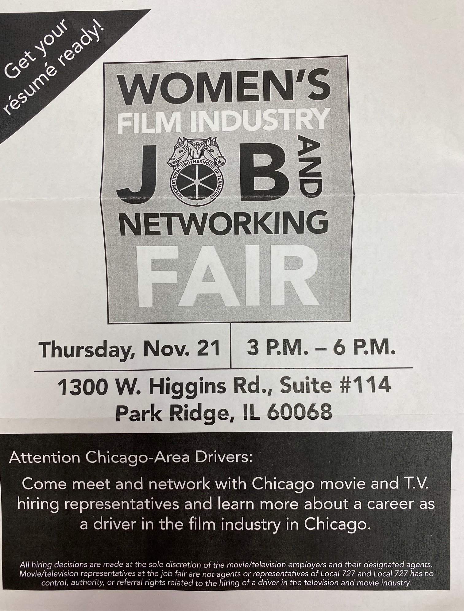 Attention Chicago-Area Drivers:Come meet and network with Chicago movie and T.V.hiring representatives and learn more about a career as a driver in the film industry in Chicago.