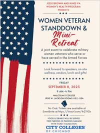 Chicago-area women Veterans are invited to a Women Veteran Stand Down and Mini-Retreat on Sept. 8 from 9 a.m. to 4 p.m. at Malcolm X College in Chicago.