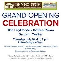 GRAND OPENING CELEBRATION for the DryHootch Coffee Room Drop-In Center, Thursday, July 16 4 to 7 pm - Ribbon Cutting at 4:30 pm