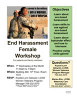 End Harassment Female Workshop For patients and family members.When: 1st Wednesday of the Month 11:30am to 1:00pm Where: Building 200, 13th Floor, Room 1372 RSVP: Krystal Lynn Gilewski, LCSW Women Veterans Program Manager 708-202-2075 ***Please RSVP ahead of time*** Read more [...]