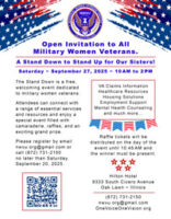 Open invitation to all military women veterans.Saturday ~ September 27, 2025 ~ 10am to 2pm at the Hilton Hotel on 9333 South Cicero Avenue Oak Lawn ~ Illinois.
