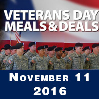 2016 Veterans Day discounts, free meals, deals and sales.