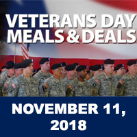 2018 Veterans Day discounts, free meals, deals and sales.