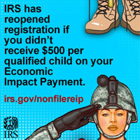 The Internal Revenue Service (IRS) has reopened the registration period for claiming an Economic Impact Payment. Individuals who receive Social Security, Supplemental Security Income, Railroad Retirement, or certain Veterans benefits – but didn’t receive the $500 payment per child earlier this year – can still file for the $500 payment. Read more [...]