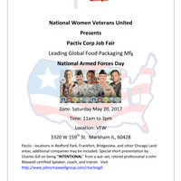 National Women Veterans United Presents Pactiv Corp Job Fair Leading Global Food Packaging Mfg National Armed Forces Day at VFW Post 9801 in Markham, IL 60428, May 20, 2017 11AM-3PM. Read more [...]