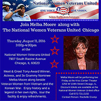 National Women Veterans United will have two special events with Melba Moore. Tell your friends and family to come out and support the National Women Veterans United (NWVU) Fundraiser and participate in the Meet and Greet. August 11-12, 2016. Read more [...]