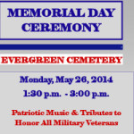 Memorial Day Ceremonies on May 26, 2014. Various Times and locations.