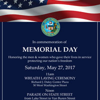 Chicago's Memorial Day Parade honors all men and women who made the ultimate sacrifice in defense of our country. The Wreath Laying Ceremony will begin at 11am at the Eternal Flame on Daley Plaza (Dearborn and Washington Streets). The parade will step off at noon and proceed south on State Street from Lake Street to Van Buren Street.