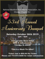 The Montford Point Marine Association, Inc., Chicago Chapter 2 (MPMA, Inc.) invites you to join and celebrate its 53rd Anniversary Black Tie Awards Luncheon, October 26, 2019 in Chicago, Illinois.