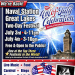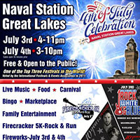 Naval Station Great Lakes 4th of July Celebration 2015. Enjoy two full days of "fire-cracking" festival fun at one of the biggest 4th of July celebrations in the area! “One of the Top Three Festivals in the World” Voted by the International Festivals and Events Association in 2011. The MWR Department would like to extend an invitation to you, your family, friends and neighbors to be a part of the Naval Station Great Lakes' July 4th Celebration on Ross Field on Fri., July 3rd from 4-11 p.m. and Sat., July 4th from 3-10 p.m. Join us as we celebrate our freedom and patriotism at the Naval Station Great Lakes at this FREE, fun-for-all-ages "open to the public," Celebration!
