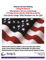 Veterans Services Meetings. Calling All Veterans Who Served in the U.S. Armed Forces 2nd Friday of Every Month, 10:00 AM-11:30 PM. Olive-Harvey College, 10001 Woodlawn Ave. Rm 1205. Veterans and Community residents come out and learn about Veteran Events, Current Veteran Activities, GI Bill Benefits, IVG Tuition Grants, Medicare Benefits for Veterans, Discuss Current Issues & Veterans Concerns Read more [...]