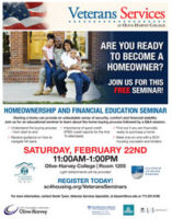 Veterans Services at Olive-Harvey College presents ARE YOU READY TO BECOME A HOMEOWNER? JOIN THIS FREE SEMINAR! Owning a home can provide an unbeatable sense of security, comfort and financial stability. Join us for an educational seminar to learn about the home buying process followed by a Q&A session. SATURDAY, FEBRUARY 22ND, 11:00AM-1:00PM Olive-Harvey College. Read more [...]