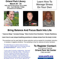 Bring Balance And Focus Back Into Life * Improve Sleep * Increase Energy * More Control Over Emotions * Greater Resiliency Learn how to use unique breathing practices to release stress from the body & mind. The practices can be used daily for stress reduction and as needed for immediate reduction in anxiety or negative emotions. The workshop is free for veterans & family members.
