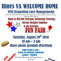 Hines VA WELCOME HOME TCM (Transition Care Management) Fun Fair Saturday, August 20th 2016. Time: 10 am – 3 pm. Location: Hines Picnic Grounds (Pavilion); if RAIN: Hines Auditorium Bldg. 9